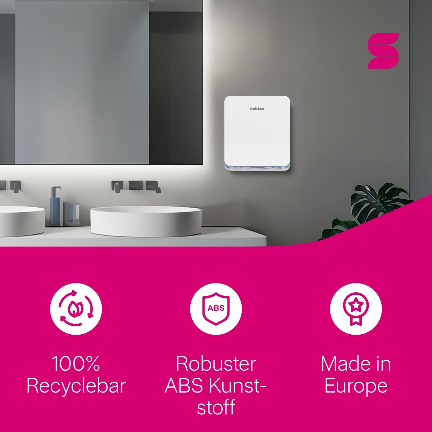 - In Schwarz (recyceltes ABS) und Weiß erhältlich