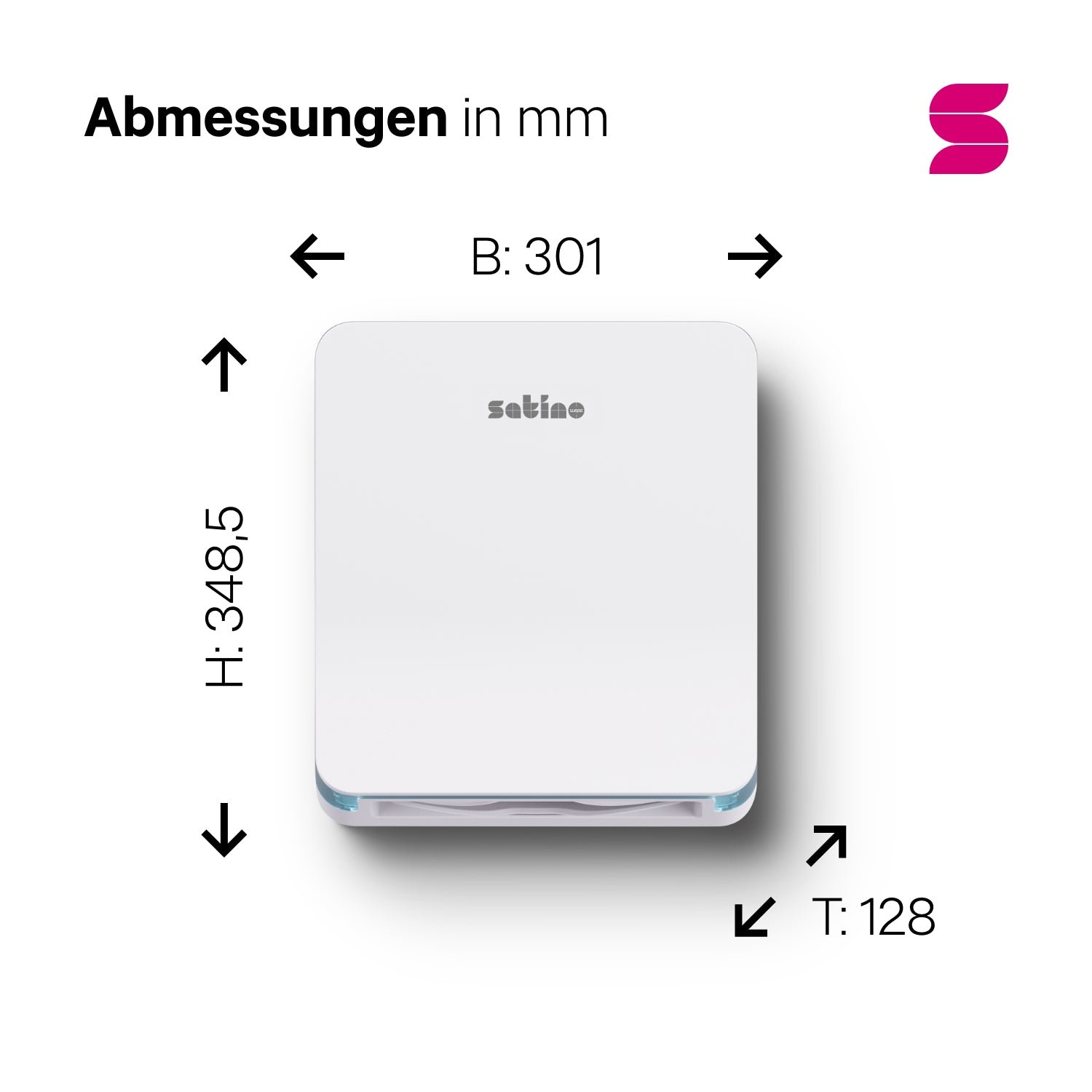 Der perfekte Allrounder für selbstentfaltendes Handtuchpapier: Das unverwechselbare ästhetisch, schlanke Design wertet jeden Waschraum auf, spart Platz und ist optimal für kleinere Waschräume oder niedrigere bis mittlere Nutzungsfrequenzen geeignet. Für alle Z- und W-Falz-Hygienepapiere von Satino by WEPA.