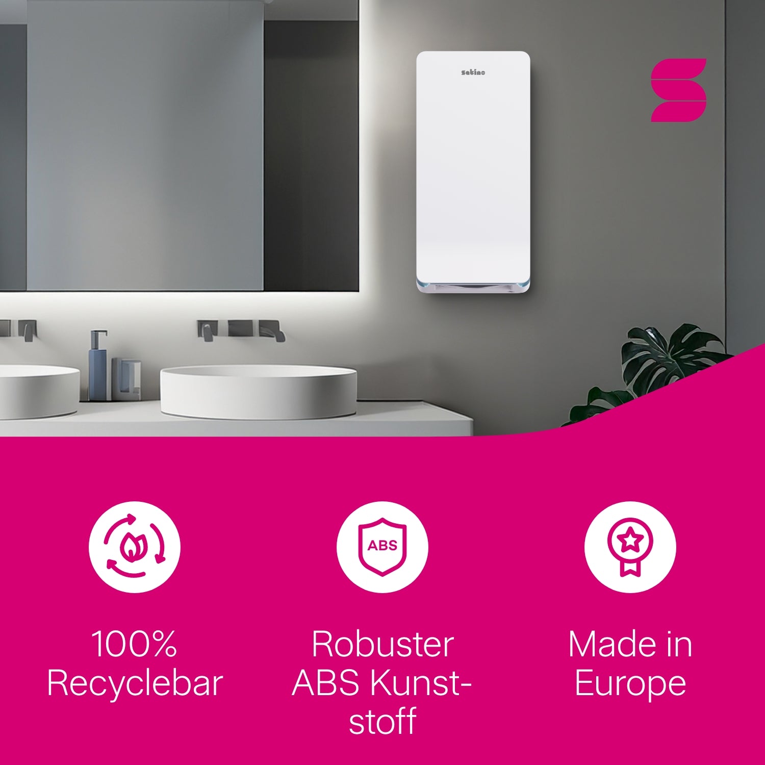 - In Schwarz (recyceltes ABS) und Weiß erhältlich