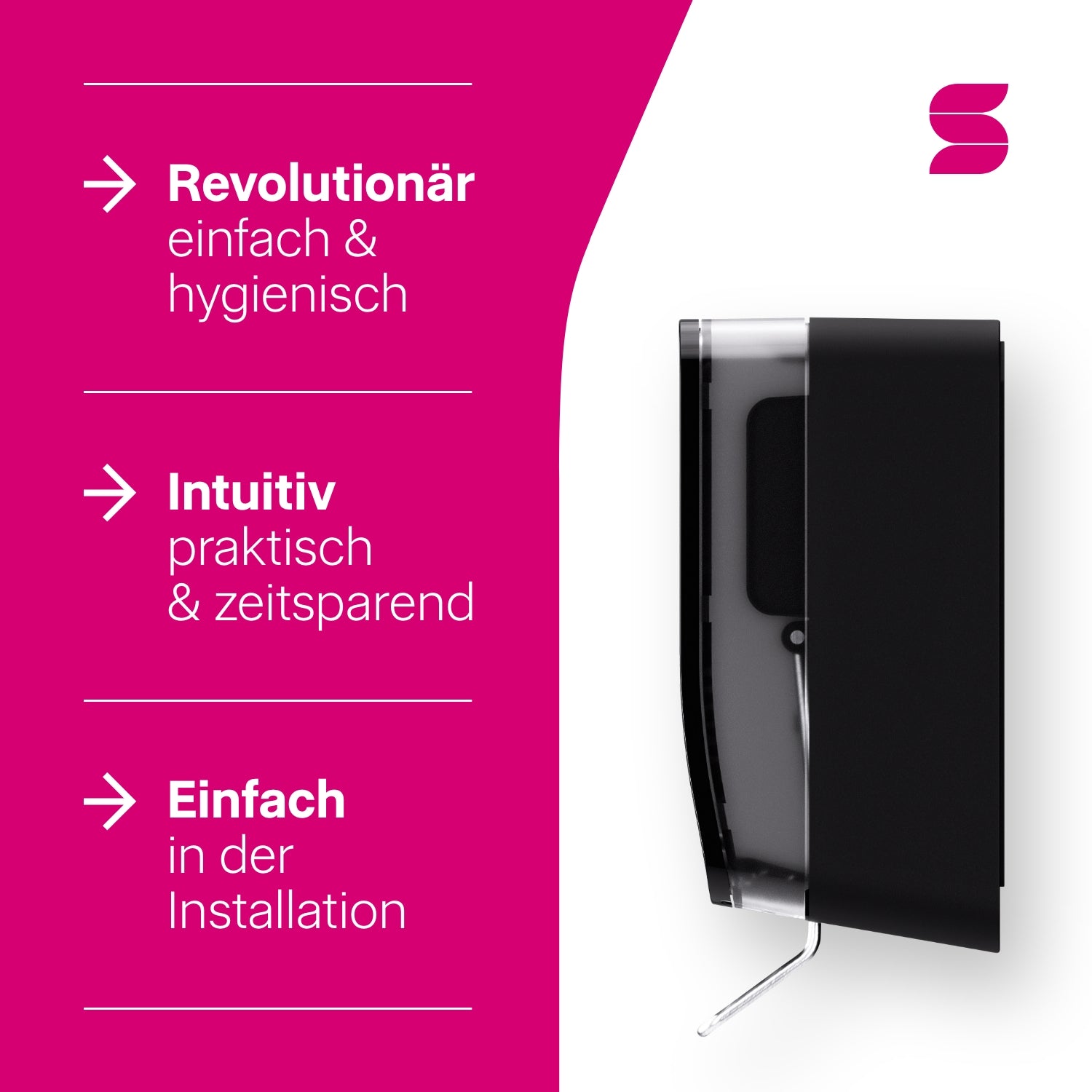 - In unter einer Minute umgerüstet als hygienischer Armhebelspender – ideal für den Einsatz im Pflege- und Gesundheitswesen