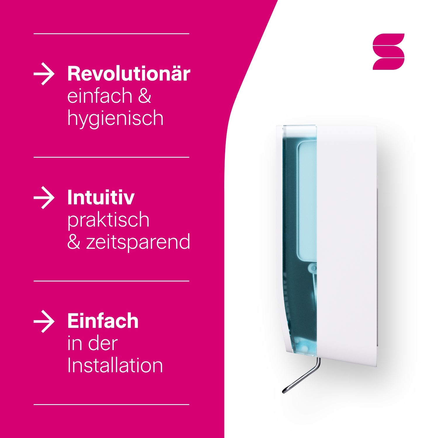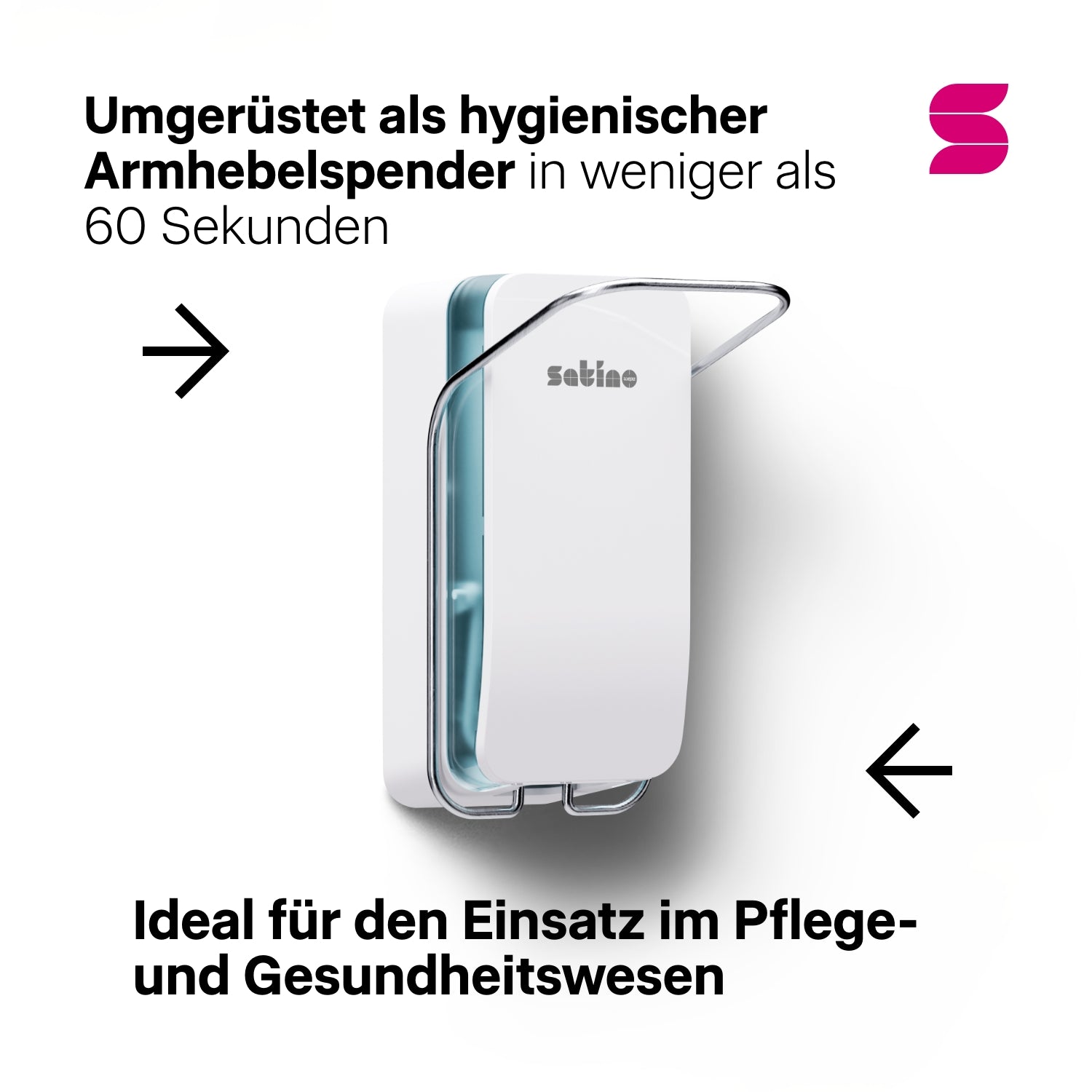 - In unter einer Minute umgerüstet als hygienischer Armhebelspender – ideal für den Einsatz im Pflege- und Gesundheitswesen